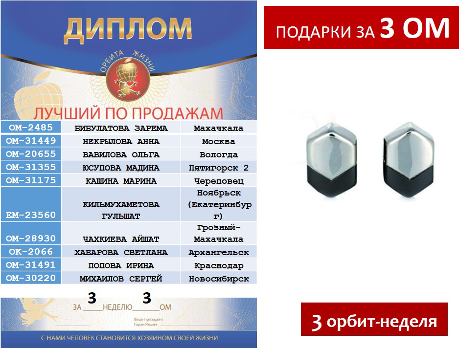 Поздравляем победителей 3 недели 3 Орбит месяца по программе «Лидер 2017»