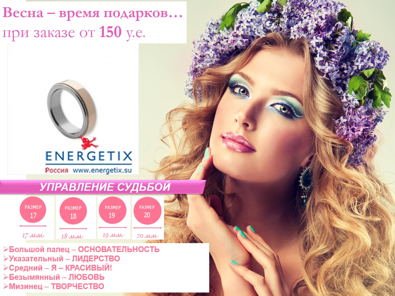 С 27.04.17г по 21.05.17. ПРИ ЗАКАЗЕ ПРОДУКЦИИ ENERGETIX-BIO МИН. НА 150у.e. В ПОДАРОК КОЛЬЦО арт. 1538!